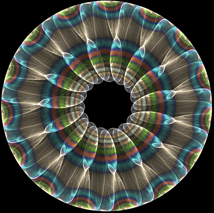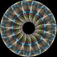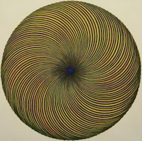 Later in the day I was asked to create my own symbol. What is most representative of how I view life (on a symbolic level) is something that shows a developmental or hierarchical pattern, but which also shows the inherent connection of all of these levels both to each other and to the central source. Being a poor artist, I drew a simple diagram of concentric circles. I started with a small circle, and continued by adding about 15 increasingly large circles around it. They were separate -- none touched. The picture had an attractive, mandala look to it. At the center of the symbol was an openness or emptiness which you could liken to the "void" or some universal "oneness." Each concentric circle gave the impression of including all the ones before it, or that were smaller than it. The hierarchical or developmental indication was there. But what I needed was a three-dimensional representation in which the source of each circle was the center itself. I have a picture in my head, but it is hard to describe it. Consider two single points on either side of an empty circle. Now, consider each of the two points being the points from which an infinite number of concentric circles both merge and reemerge. So, we have an empty circle with two sets of concentric circles emanating outward from the two points on either side. The number of circles emanating from each point is potentially infinite. But this is still two-dimensional, and fairly easy to describe. But add this for depth and complexity: the empty space is a sphere, and every point on the surface of the sphere is also a point at which a set of concentric circles both merge and emerge. But now, the concentric circles are no longer two dimensional--they are three dimensional. They are concentric spheres with a common ground. This is the hardest part: consider the entire surface of the central sphere or "void" as a single point. In this scenario we don't have an infinite number of sets of concentric spheres. We have just one set of an infinite number of spheres that share the entire surface of the empty space as the point at which they both merge and re-emerge. That's the closest symbolic representation of reality that I could come up with. Of course, I could not draw it. I don't have time to expound on its implicate meaning. But its gross characteristics lend themselves to an obvious explanation of reality as it appears to me: there is only one source; everything intersects with this reality at the same place; while there is differentiation of reality in gross and subtle ways, all differences either collapse (backward arc) or transfigure (forward arc) into the same place of their origin (or destination). But looking at my sad circles at the work shop, my picture looked more like the vibrations of the impressionist painting, "The Scream" than anything buddhist or mandalic.